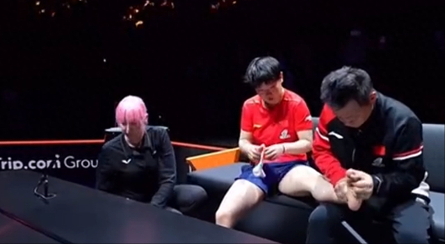孙颖莎在对阵蒯曼的角逐当选择退赛,由于她的左脚踝在第三局竣事前有一个扭曲,第四局最先前她叫了医疗暂停,简单的冰敷/推拿后她又对峙了两局,年夜比分2-3掉队,第六局开打前莎莎选择了退赛。